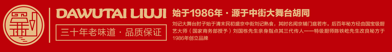 盛京,昔乃大清王朝發(fā)祥之地。劉記大舞臺(tái)肘子始于清末民初盛京中街劉記熟食,其時(shí)名聞京輔門(mén)庭若市。后百年秘方經(jīng)由國(guó)寶級(jí)廚藝大師(國(guó)家商務(wù)部授予)劉國(guó)棟先生親身指點(diǎn)其三代傳人——中國(guó)烹飪大師劉家驥之徒中國(guó)烹飪大師陳鐵屹先生改良秘方,于1986年創(chuàng)立品牌。劉記大舞臺(tái)經(jīng)營(yíng)的產(chǎn)品涵蓋招牌熏肘,豬蹄,燒雞等系列,產(chǎn)品色澤潤(rùn)嫩、酥美可口、吮指尤香、譽(yù)滿沈城,遂成古今絕味,其獨(dú)特的風(fēng)味深受沈城百姓喜愛(ài)。經(jīng)過(guò)三十余年的沉淀發(fā)展,劉記大舞臺(tái)品牌也成為了沈陽(yáng)地標(biāo)美食文化名片之一。